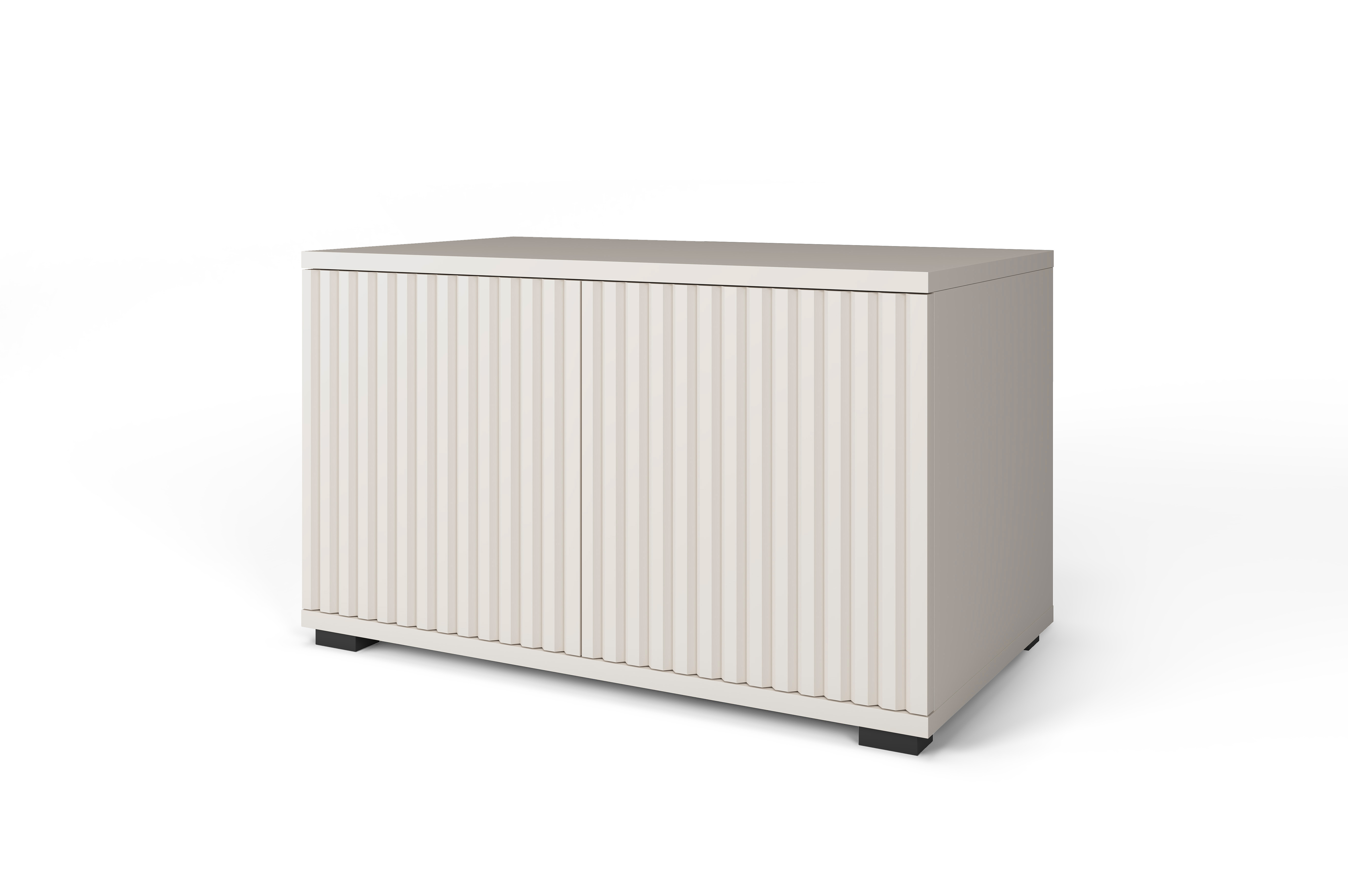 Botník so zvislými lamelami a nízkymi čiernymi nohami. Má dvojkrídlové dvierka a vnútornú policu, ktorá prakticky rozdeľuje priestor na uloženie obuvi. Jednoduchý a moderný dizajn vhodný do každej predsiene.