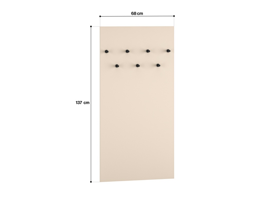 Vešiakový panel Sophie má v hornej časti dva rady čiernych okrúhlych