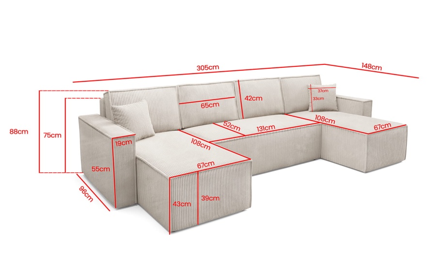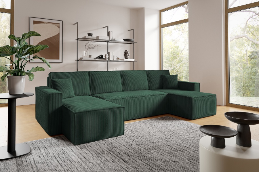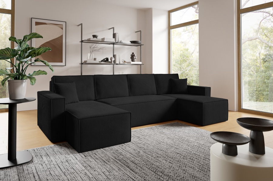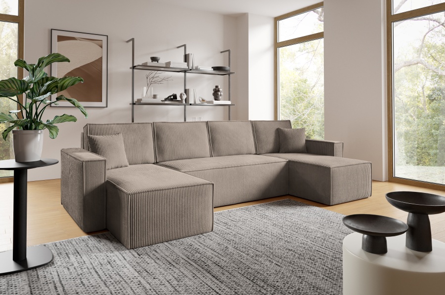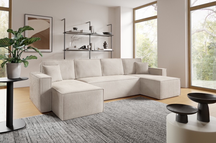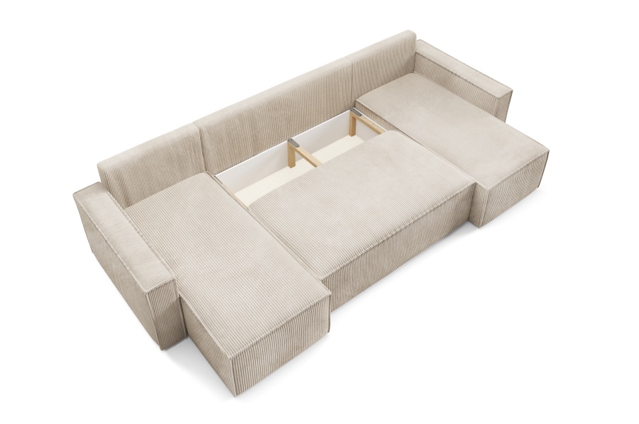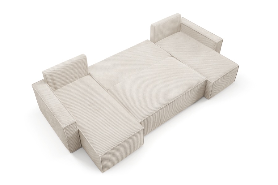 Sedacia súprava Basic v tvare U ponúka priestranné a pohodlné sedenie pre celú rodinu. Vďaka funkcii rozkladu ju jednoducho premeníte na lôžko vhodné na príležitostné spanie. Praktický úložný priestor poskytuje miesto na uskladnenie prikrývok, vankúšov či iných vecí.