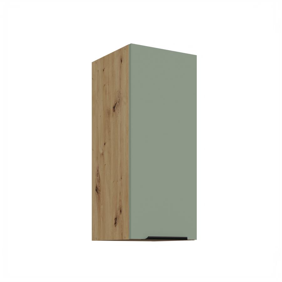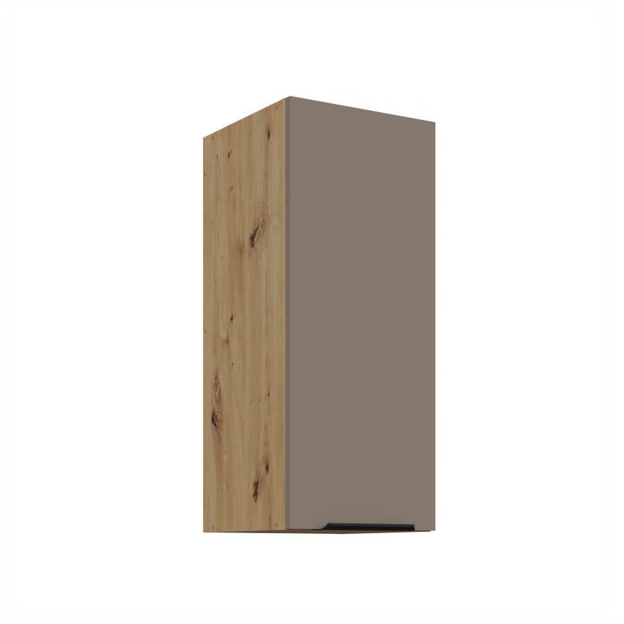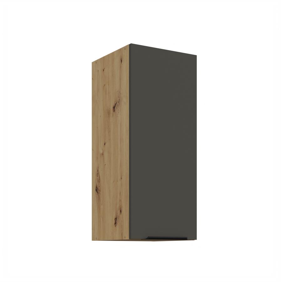Horná skrinka Aria AR 30 G-72 1F je 1-dverová závesná skrinka vhodná na praktické a moderné usporiadanie kuchynského priestoru. Dvierka sú doplnené čiernou úchytkou, ktorá dodáva skrinke moderný a elegantný vzhľad. Vnútorný priestor je rozdelený dvoma policami, ktoré ponúkajú dostatok. Korpus je vyhotovený v dekóre dreva Dub Artisan a dvierka sú dostupné v 5 moderných farebných prevedeniach.