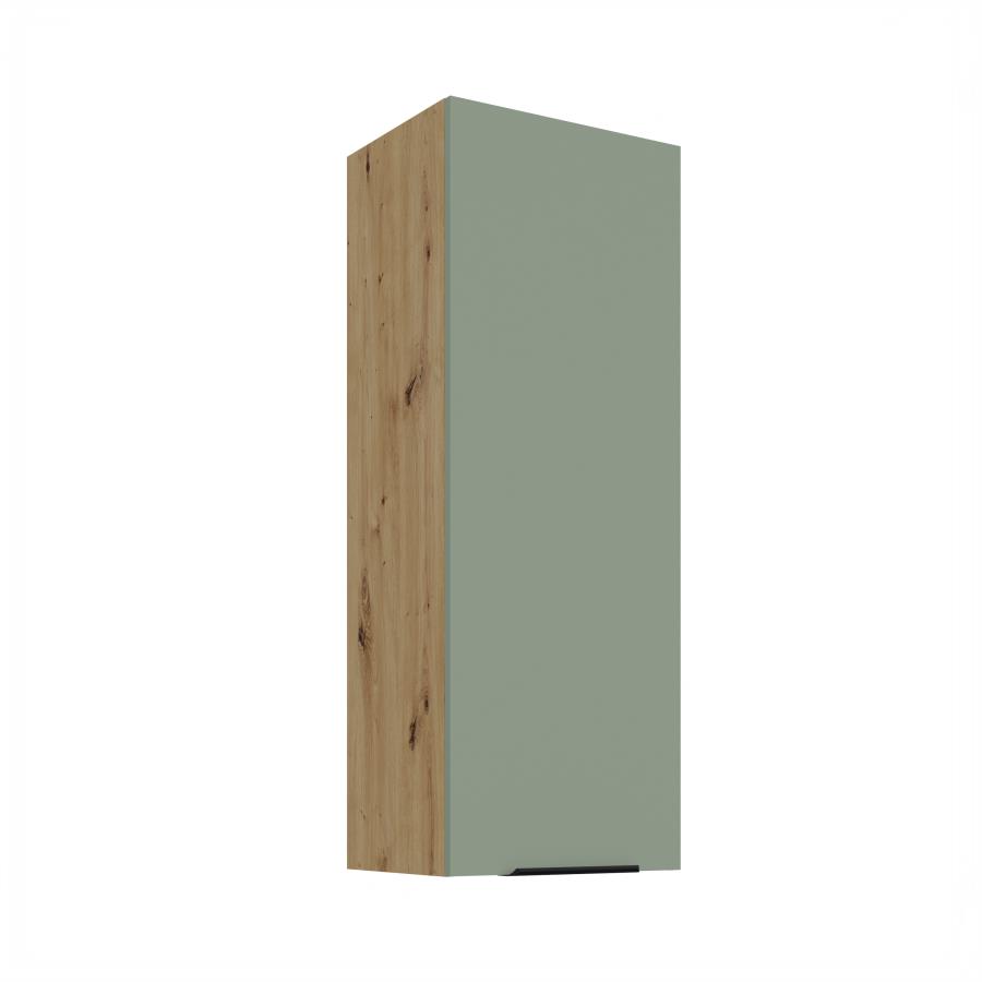 Horná skrinka Aria AR 40 G-108 1F je 1-dverová skrinka s elegantným a moderným dizajnom, ideálna na praktické usporiadanie kuchynského priestoru. Dvierka dopĺňa čierna úchytka, ktorá podčiarkuje minimalistický štýl. Vnútorný priestor je rozdelený tromi policami, ktoré poskytujú dostatok úložného miesta. Korpus je vyhotovený v dekóre dreva Dub Artisan a dvierka sú dostupné v 5 moderných farebných prevedeniach.