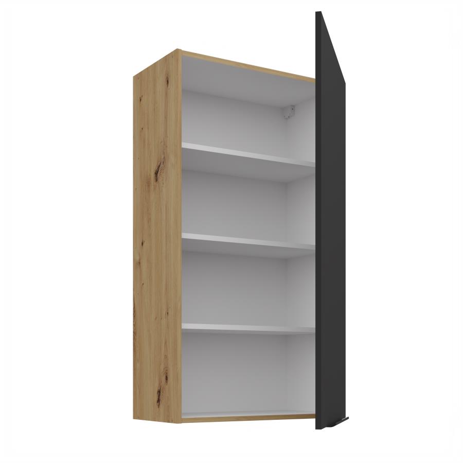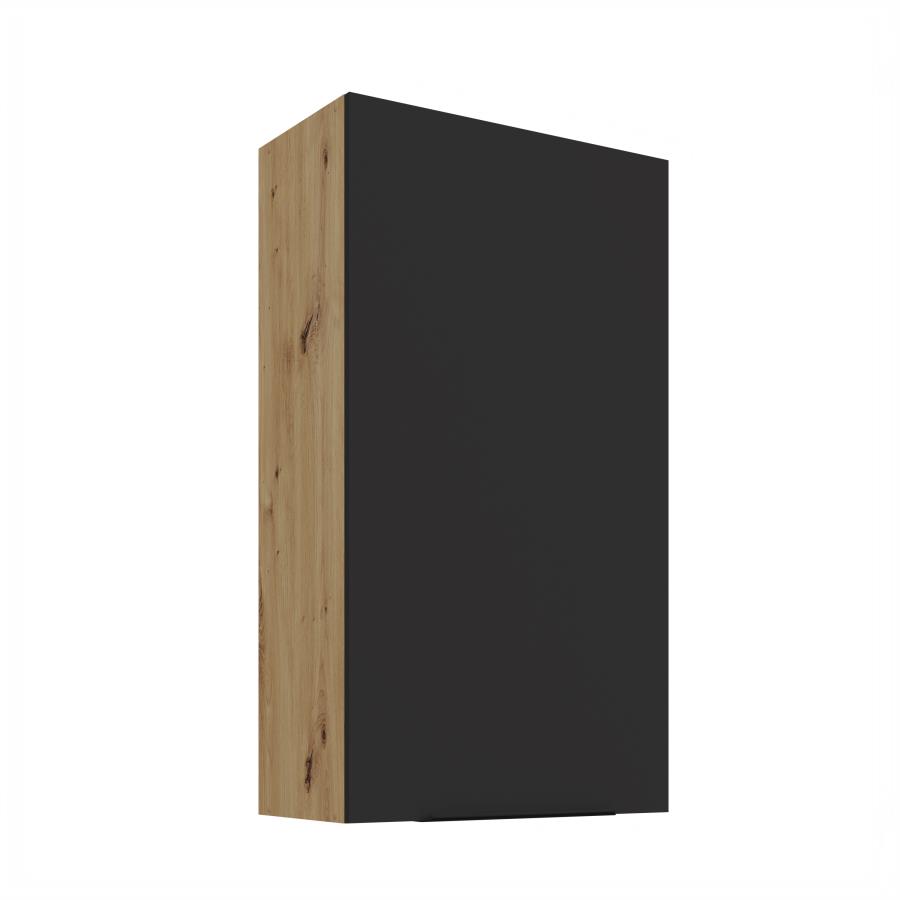 Horná skrinka Aria AR 60 G-108 1F je 1-dverová skrinka určená na moderné a praktické usporiadanie kuchynského priestoru. Dvierka sú doplnené čiernou úchytkou, ktorá dodáva skrinke elegantný a štýlový vzhľad. Vnútorný priestor je rozdelený tromi policami, ktoré ponúkajú dostatok úložného miesta. Korpus je vyhotovený v dekóre dreva Dub Artisan a dvierka sú dostupné v 5 moderných farebných prevedeniach.