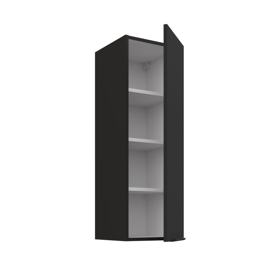 Horná skrinka Aria BL 30 G-90 1F je 1-dverová závesná skrinka vhodná na praktické a moderné usporiadanie kuchynského priestoru. Dvierka sú doplnené čiernou úchytkou, ktorá dodáva skrinke elegantný a moderný vzhľad. Vnútorný priestor je rozdelený tromi policami, ktoré ponúkajú dostatok úložného priestoru. Korpus je vyhotovený v dekóre čierna a čelá dvierok sú dostupné v 5 moderných farebných prevedeniach.