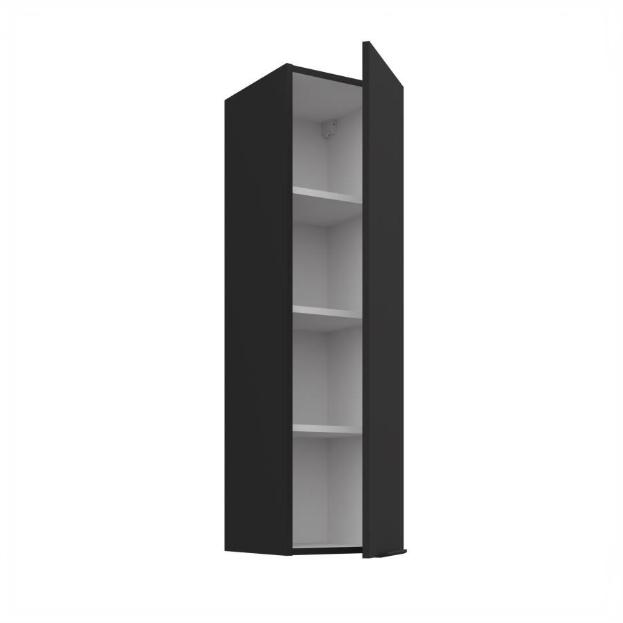 Horná skrinka Aria BL 30 G-108 1F je vysoká 1-dverová závesná skrinka určená na praktické a moderné usporiadanie kuchynského priestoru. Dvierka dopĺňa čierna úchytka, ktorá zvýrazňuje elegantný a minimalistický vzhľad. Vnútorný priestor je rozdelený tromi policami, ktoré poskytujú dostatok miesta. Korpus je vyhotovený v dekóre čierna a čelá dvierok sú dostupné v 5 moderných farebných prevedeniach.