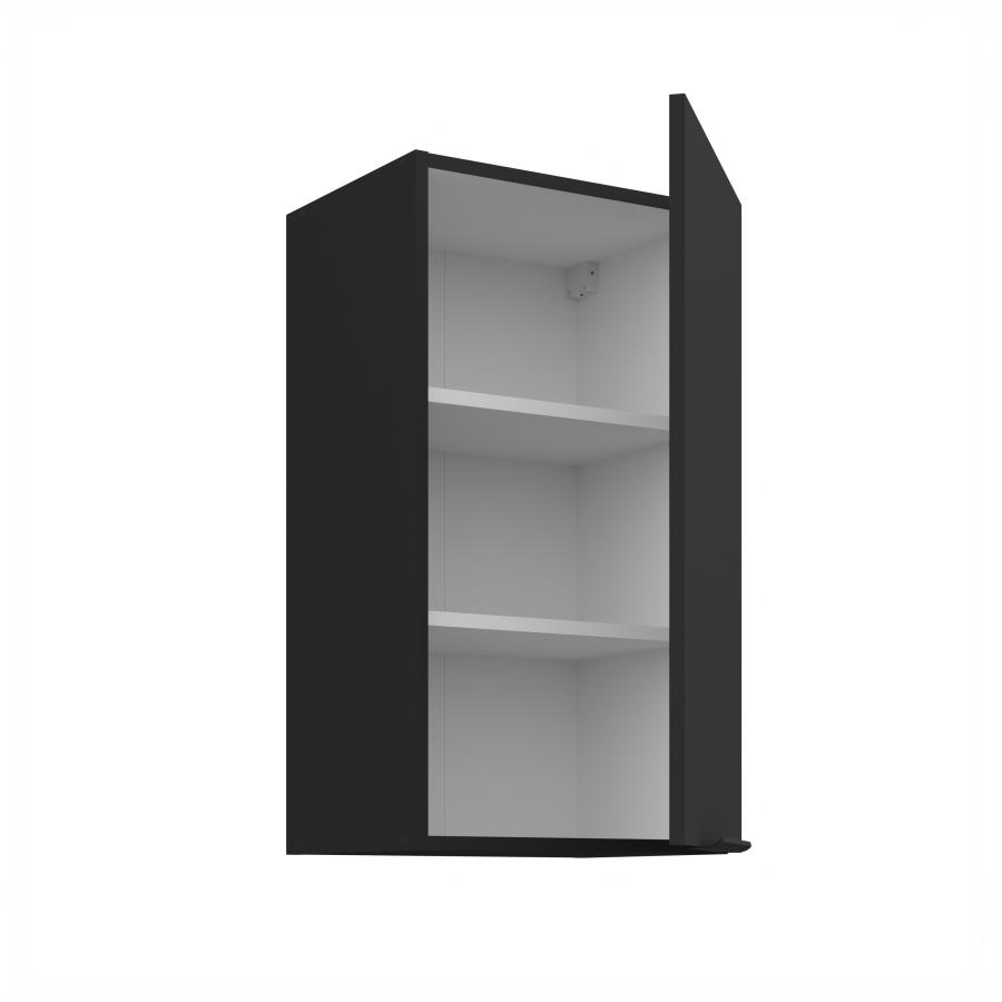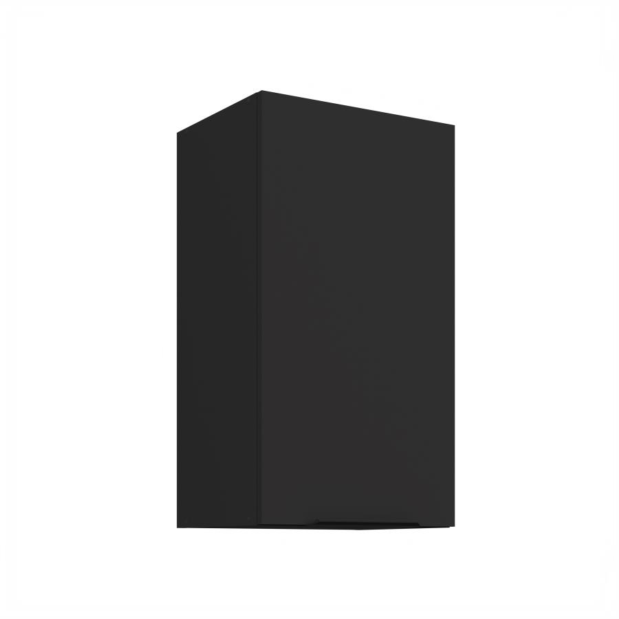 Horná skrinka Aria BL 40 G-72 1F je 1-dverová závesná skrinka určená na moderné a praktické usporiadanie kuchynského priestoru. Dvierka dopĺňa čierna úchytka, ktorá zvýrazňuje elegantný a minimalistický dizajn. Vnútorný priestor je rozdelený dvoma policami, ktoré poskytujú dostatok miesta na prehľadné uloženie. Korpus je vyhotovený v dekóre čierna a dvierka sú dostupné v 5 moderných farebných prevedeniach.