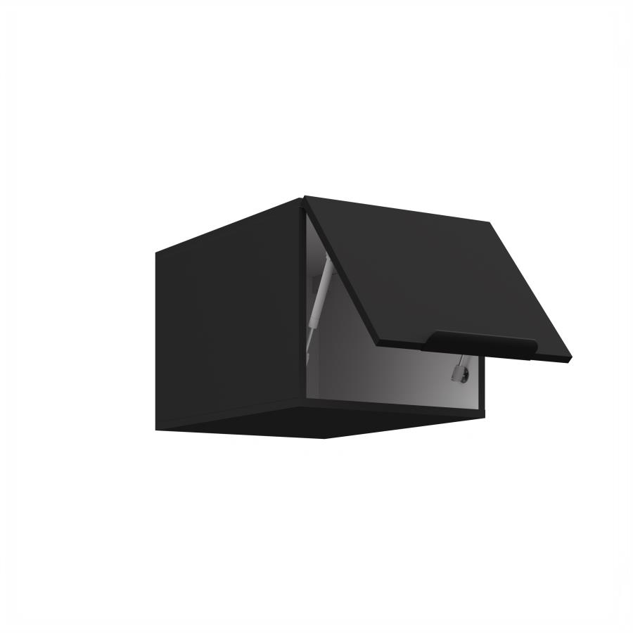 Horná skrinka Aria BL 40 NAGU-36 1F je výklopná závesná skrinka, ideálna na umiestnenie nad digestor alebo ako doplnkový horný modul v kuchyni. Dvierka sa otvárajú nahor pomocou plynových piestov, čo zabezpečuje pohodlnú manipuláciu a plynulý chod. Dopĺňa ich čierna úchytka, ktorá zvýrazňuje elegantný vzhľad skrinky. Korpus je vyhotovený v dekóre čierna a dvierka sú dostupné v 5 moderných farebných prevedeniach.