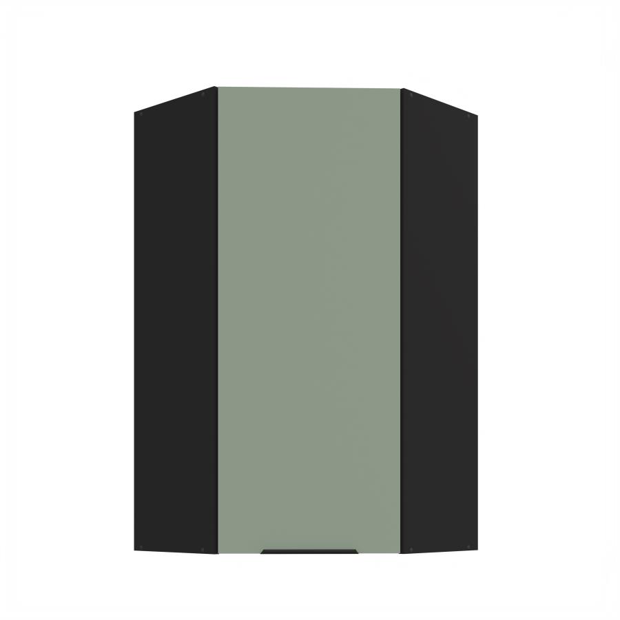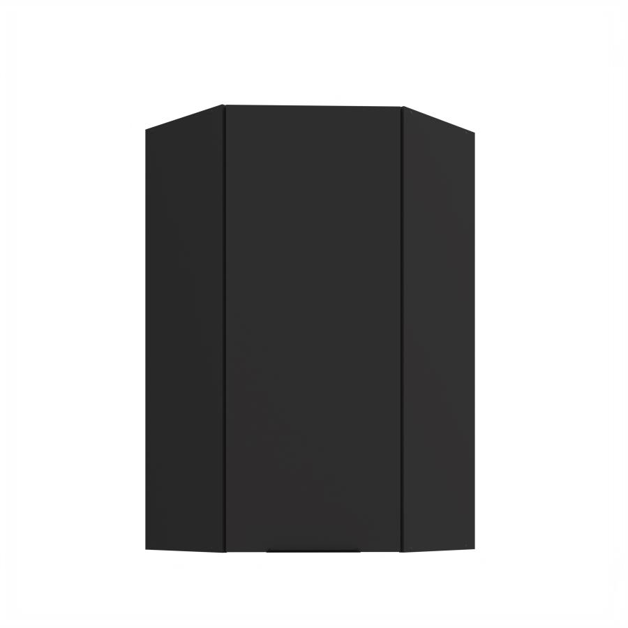 Rohová horná skrinka Aria BL 60x60 GN-108 1F (45°) je 1-dverová závesná rohová skrinka, ktorá je ideálna na využitie rohového priestoru v kuchyni. Dvierka sú vybavené čiernou úchytkou, ktorá dodáva skrinke elegantný a moderný vzhľad. Vnútorný priestor je rozdelený tromi policami, ktoré ponúkajú dostatok úložného miesta pre kuchynské potreby, riad alebo potraviny. Korpus je vyhotovený v dekóre čierna a dvierka sú dostupné v 5 moderných farebných prevedeniach.