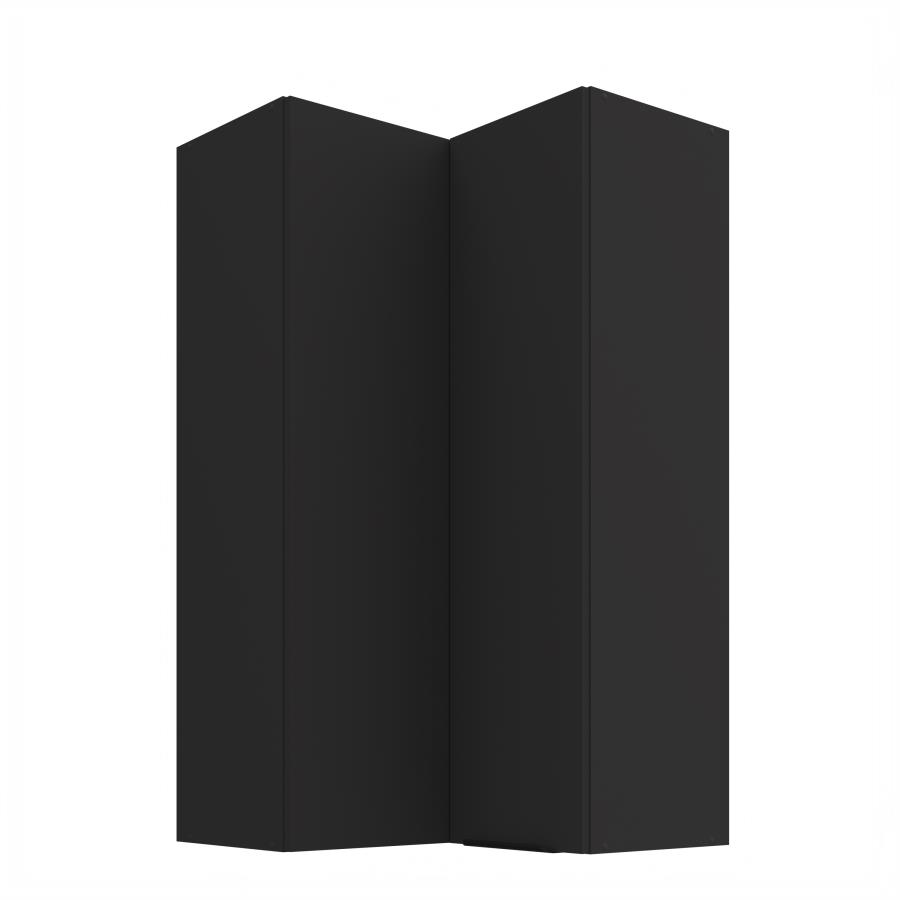 Rohová horná skrinka Aria BL 60x60 GN-108 2F (90°) je 2-dverová rohová skrinka, ktorá efektívne využíva priestor v 90° rohu kuchyne. Dvierka sú vybavené čiernymi úchytkami, ktoré dodávajú skrinke elegantný a moderný vzhľad. Vnútorný priestor je rozdelený tromi policami, čo poskytuje dostatok miesta. Korpus je vyhotovený v dekóre čierna a dvierka sú dostupné v 5 moderných farebných prevedeniach.