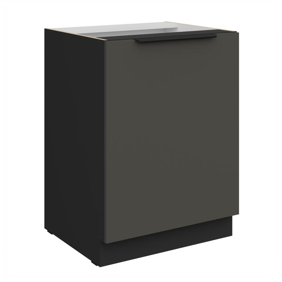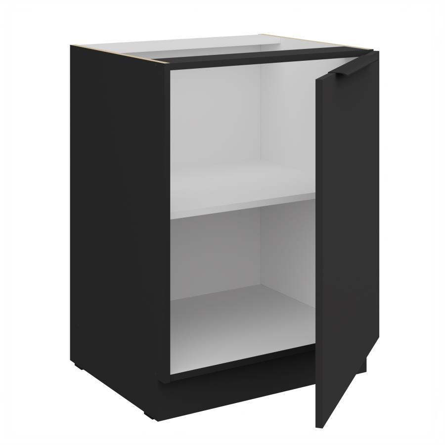 Spodná skrinka Aria BL 60 D 1F BB je 1-dverová skrinka. Vnútorný priestor je rozdelený policou, ktorá umožňuje efektívne usporiadanie uložených vecí. Dvierka sú doplnené čiernou úchytkou, ktorá dodáva skrinke moderný vzhľad a ladí s celkovým dizajnom kuchynskej zostavy Aria. Korpus je vyhotovený v odtieni čierna a dvierka sú dostupné v 5 moderných farebných prevedeniach.