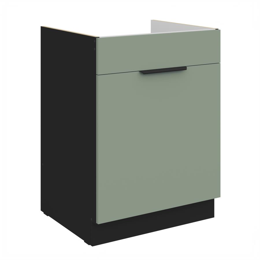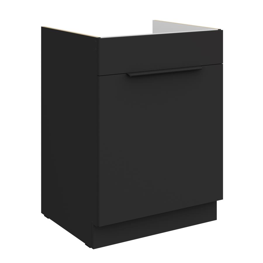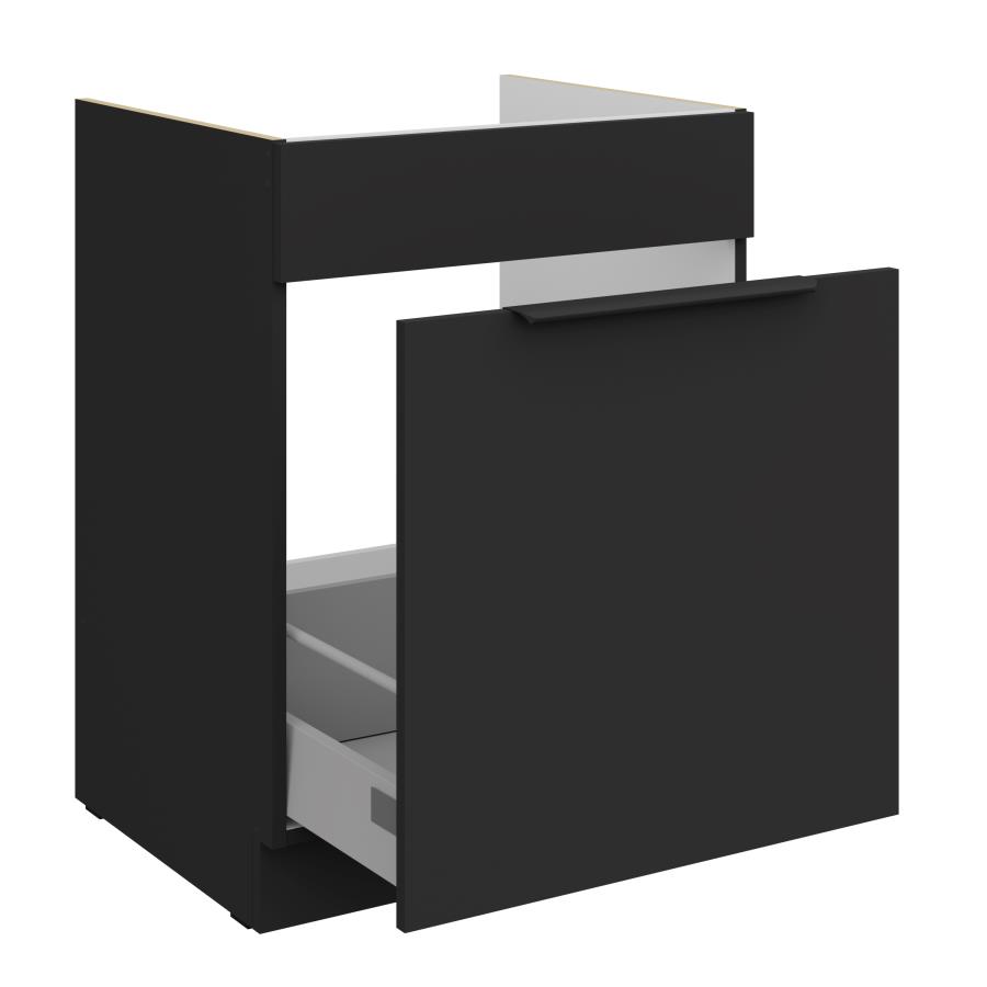 Spodná skrinka Aria BL 60 ZL 1S BB je moderná zásuvková skrinka určená pod kuchynský drez. Je vybavená falošnou zásuvkou v hornej časti a veľkým spodným výklopným priestorom, ktorý je ideálny na umiestnenie odpadkových košov alebo čistiacich prostriedkov. Zásuvky sú osadené mechanizmom pre plynulý a tichý chod, čo zaručuje pohodlné každodenné používanie. Čelá zásuviek dopĺňajú čierne úchytky, ktoré podčiarkujú moderný a nadčasový dizajn. Korpus je vyhotovený v odtieni čierna a dvierka a sú dostupné v 5 moderných farebných prevedeniach.