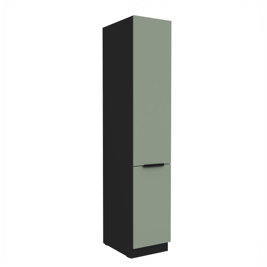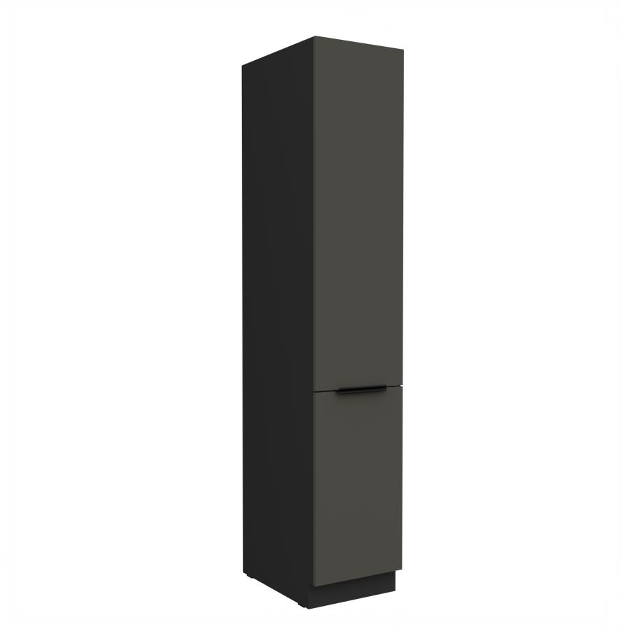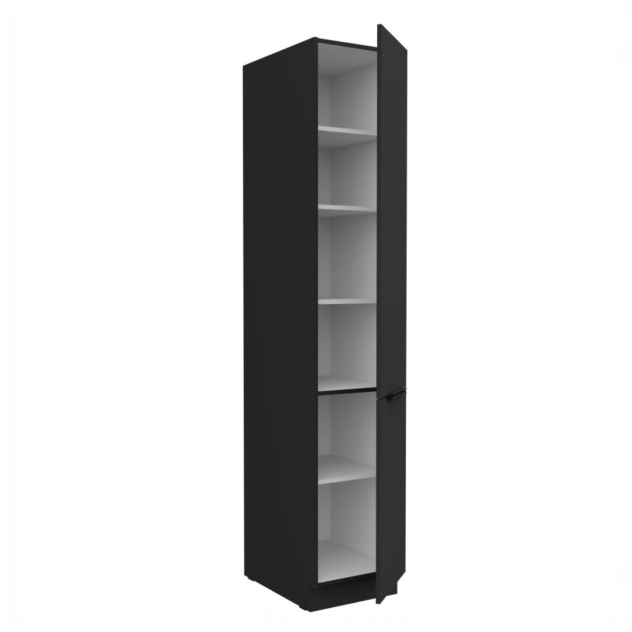 Vysoká potravinová skrinka Aria BL 40 DK-210 2F je moderný a praktický prvok kuchynskej zostavy, určený na prehľadné uskladnenie potravín. Disponuje dvojicou dvierok, za ktorými sa nachádza niekoľko priestranných políc, ideálnych na uloženie trvanlivých potravín, kuchynských doplnkov či riadu. Dvierka sú vybavené mechanizmom pre tiché a plynulé zatváranie, čo zaručuje komfortné každodenné používanie. Dvierka sú doplnené čiernymi úchytkami, ktoré dodávajú skrinke elegantný a moderný vzhľad. Korpus je vyhotovený v odtieni čierna a dvierka sú dostupné v 5 moderných farebných prevedeniach.