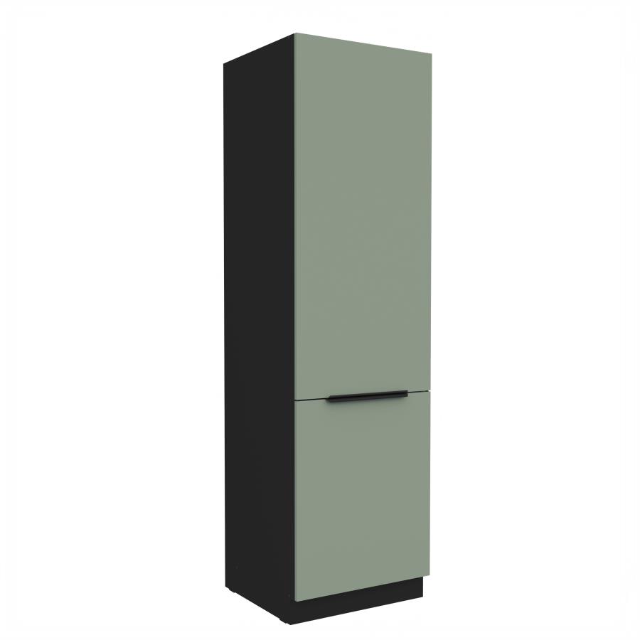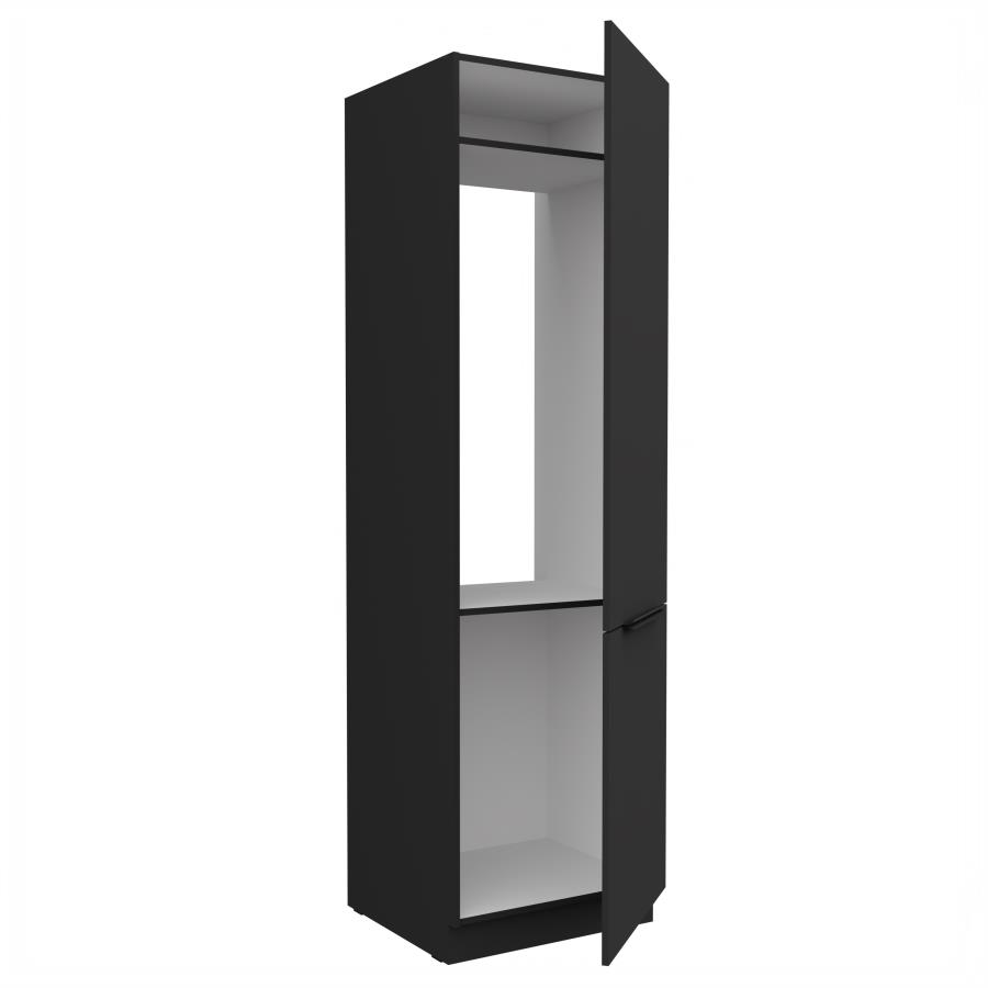 Vysoká skrinka Aria BL 60 LO-210 2F je určená na zabudovanie vstavaných spotrebičov – chladničky a mrazničky. Skrinka je navrhnutá tak, aby poskytovala ideálne riešenie pre moderné kuchyne, kde sa kladie dôraz na jednotný dizajn a estetický vzhľad. Skladá sa z dvoch dvierok – horné sú určené pre vstavanú chladničku a spodné pre mrazničku. Dvierka sú vybavené mechanizmom pre tiché a plynulé zatváranie, čo zabezpečuje komfortné používanie. Elegantné čierne úchytky podčiarkujú moderný štýl skrinky. Korpus je vyhotovený v odtieni čierna a dvierka sú dostupné v 5 moderných farebných prevedeniach.